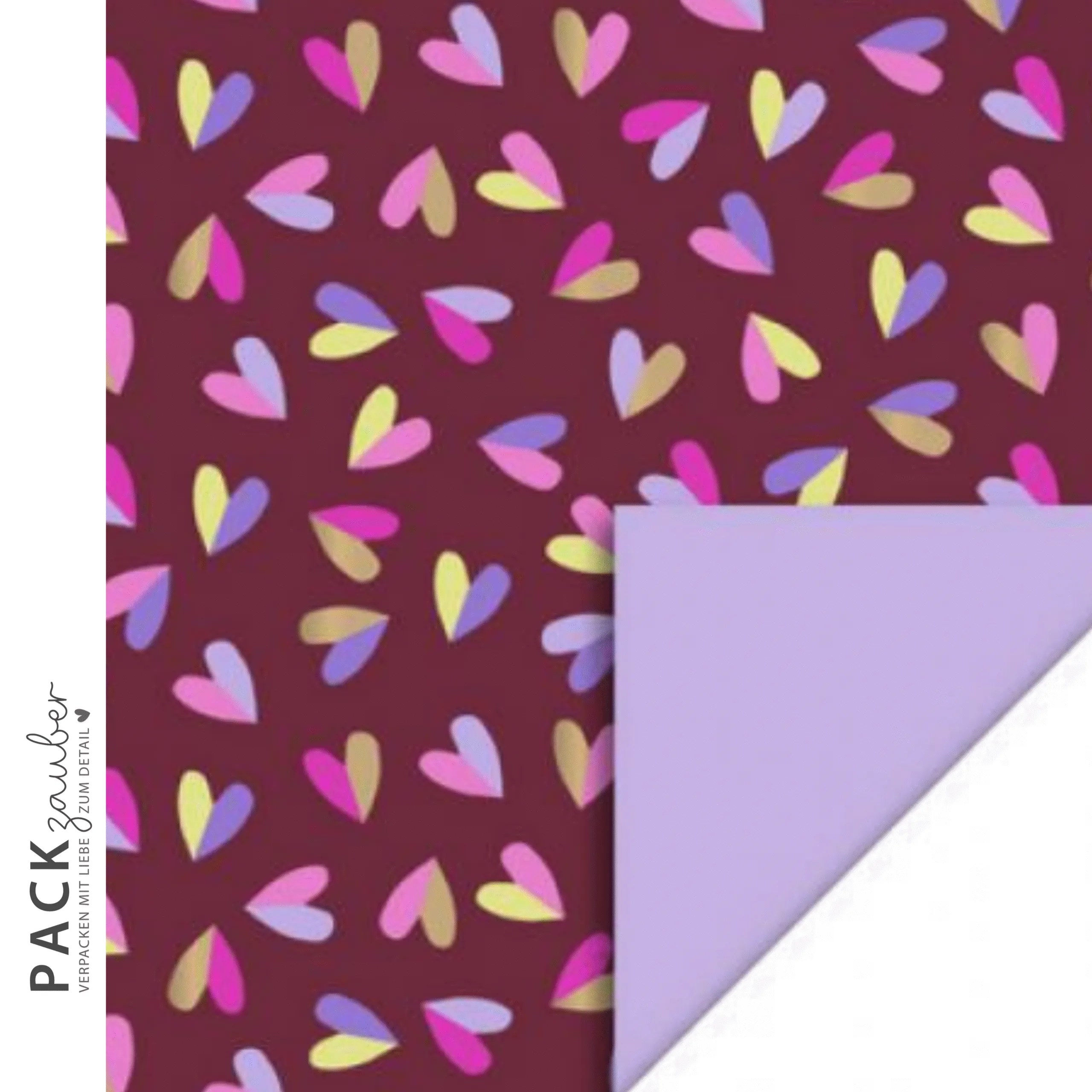 Geschenkpapier „Herzen“ rot, lila 70 cm x 3 m