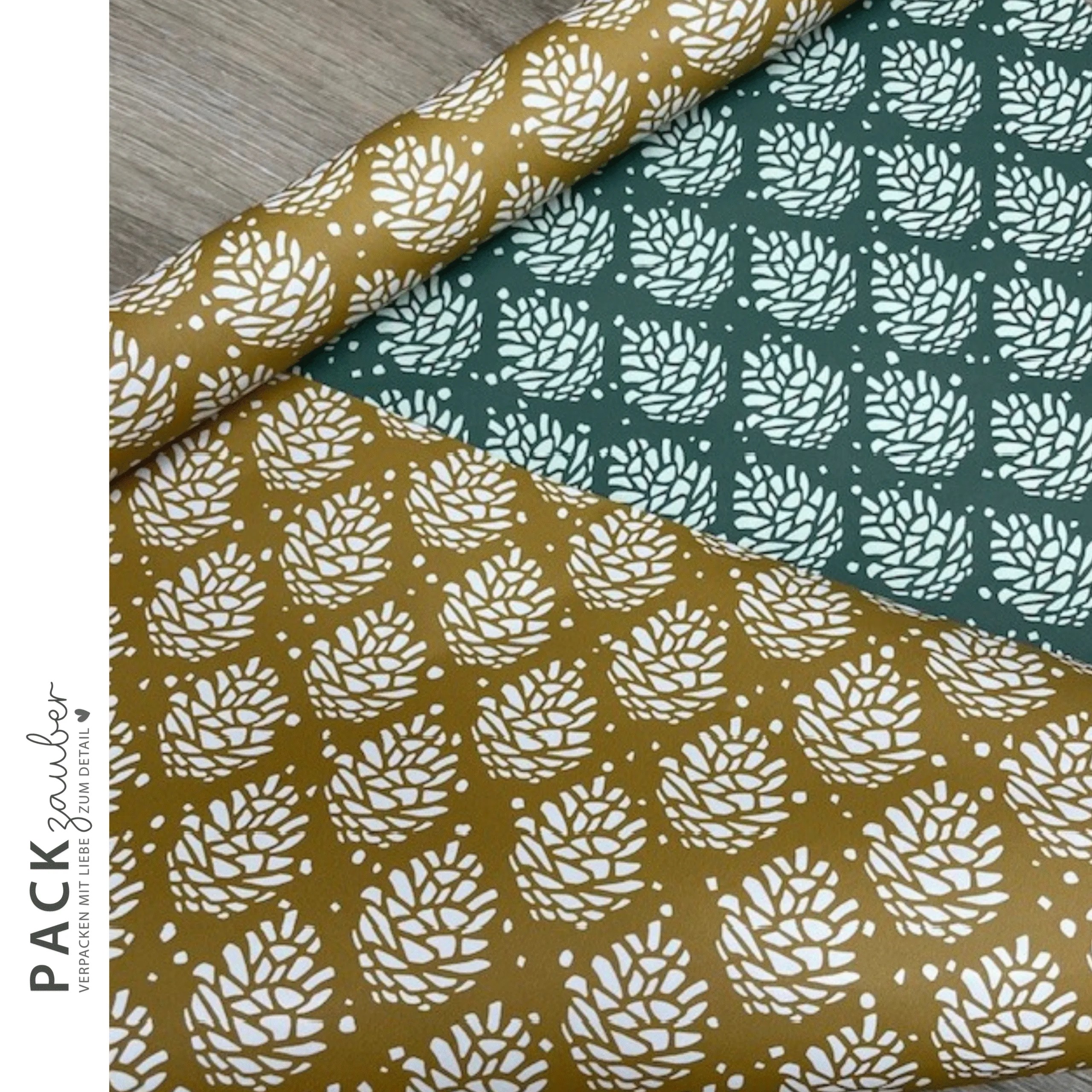 Geschenkpapier ‚ Zapfen‘ weiß | gold | grün