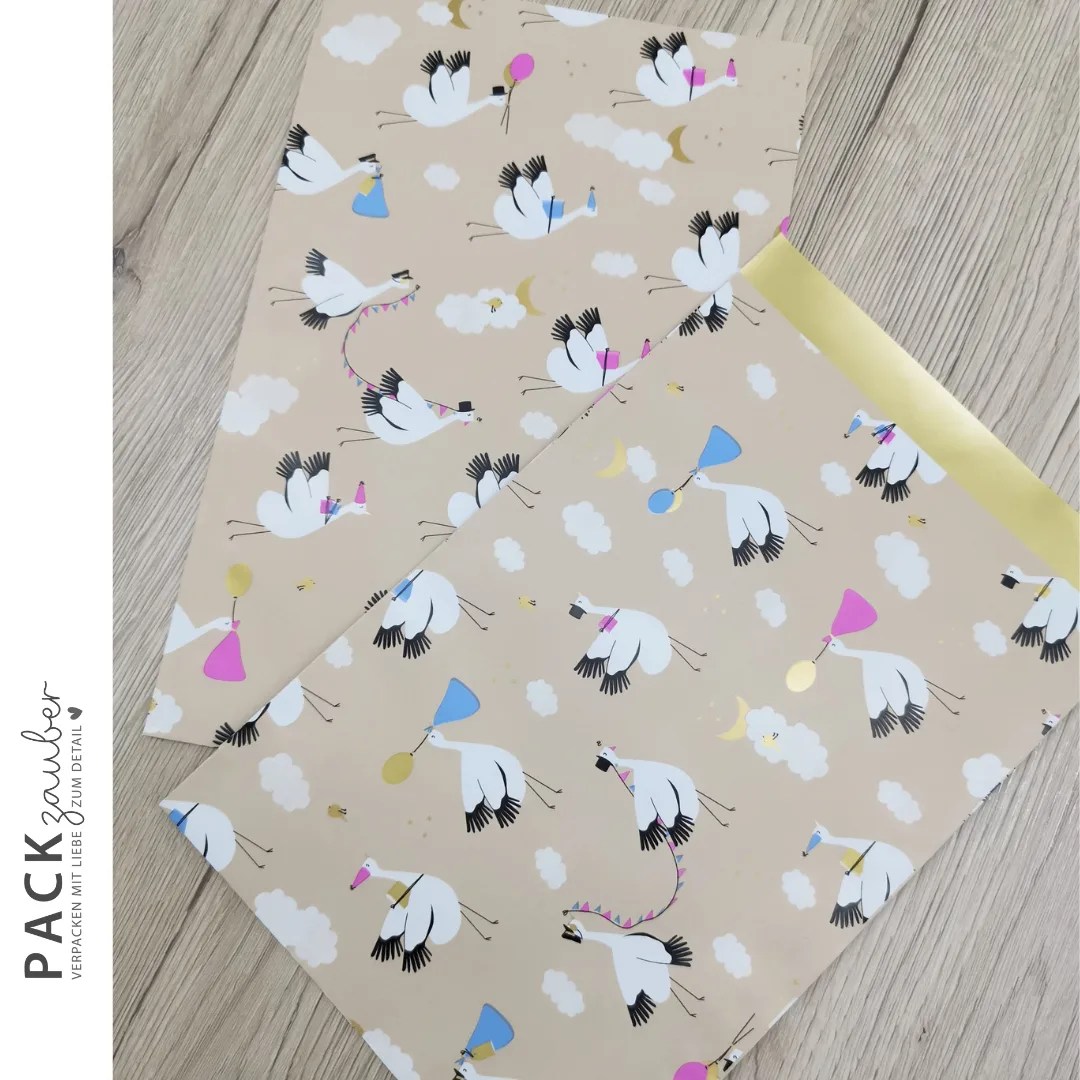 Geschenktüte L „Apricot mit Storch“ (5 Stück im Set)